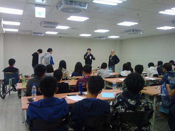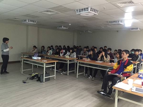 圖二:橙田護理社工為小港高中學生與高雄中學的學生,講授「關懷訪視與同理技巧」、「老人活動設計」兩堂志工訓練課程。藉此增進學生具有「同理心回應」之助人技巧,並試以自己為活動參與者進行活動設計,進而達到更為完善的活動設計與帶領。